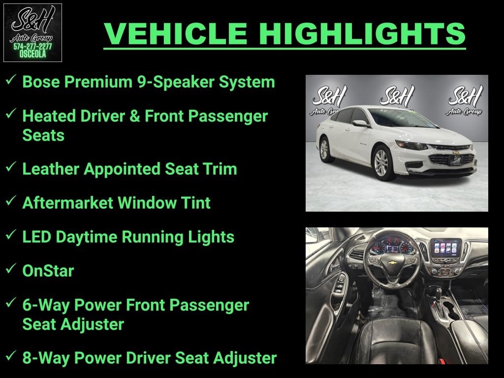 Black Leather. Summit White 2016 Chevrolet Malibu LT 1LT 1LT FWD 6-Speed Automatic 1.5L DOHC