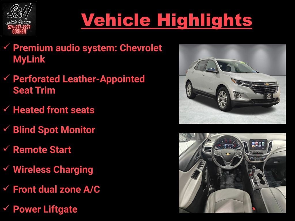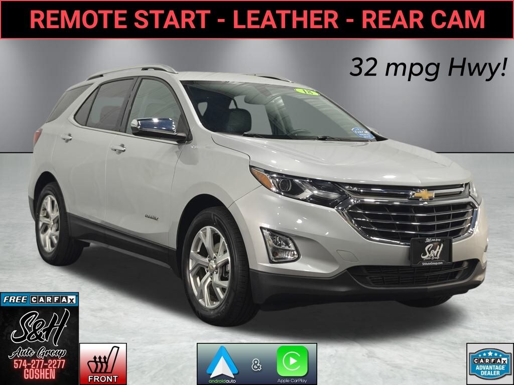 Blind Spot Monitor, Remote Start, Wireless Charging, Apple CarPlay/Android Auto, Exterior Parking Camera Rear, Front dual zone A/C, Garage door transmitter, Heated front seats, Perforated Leather-Appointed Seat Trim, Power Liftgate, Premium audio system: Chevrolet MyLink. Silver Ice Metallic 2018 Chevrolet Equinox Premier FWD FWD 6-Speed Automatic Electronic with Overdrive 4D Sport Utility 1.5L DOHC 26/32 City/Highway MPG