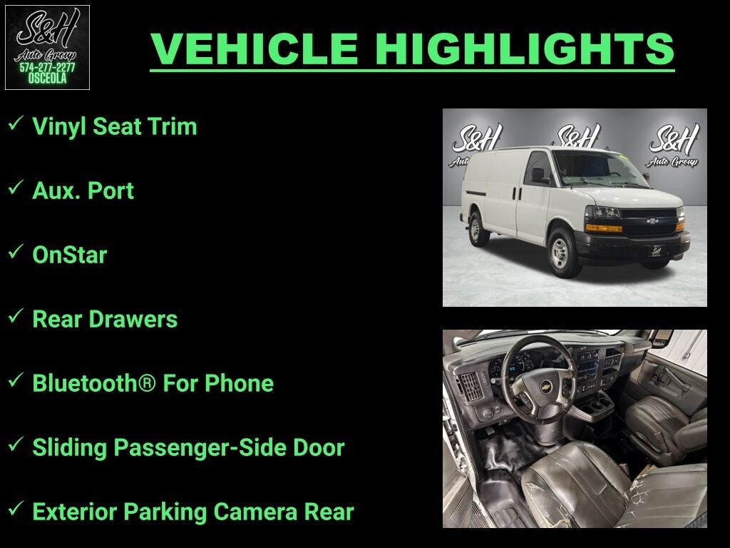 Aux. Port, OnStar, Rear Drawers, Bluetooth® For Phone, Exterior Parking Camera Rear, Sliding Passenger-Side Door, Vinyl Seat Trim. Summit White 2018 Chevrolet Express 3500 Work Van Cargo Cargo RWD 8-Speed Automatic with Overdrive 4.3L V6
