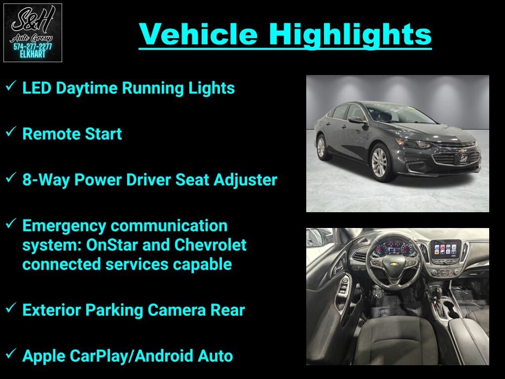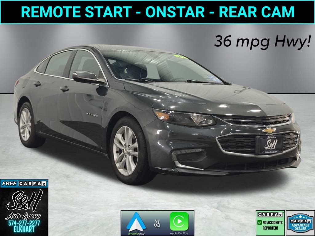 Clean CARFAX. LED Daytime Running Lights, Remote Start, Jet Black w/Premium Cloth Seat Trim, 8-Way Power Driver Seat Adjuster, Apple CarPlay/Android Auto, Emergency communication system: OnStar and Chevrolet connected services capable, Exterior Parking Camera Rear. Nightfall Gray Metallic 2018 Chevrolet Malibu LT FWD FWD 6-Speed Automatic 4D Sedan 1.5L DOHC 27/36 City/Highway MPG
