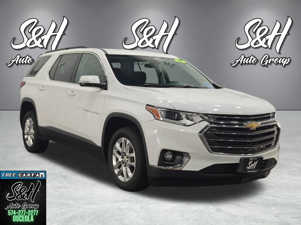 Clean CARFAX. Android Auto & Apple Carplay, Blind Spot Monitor, LED Tail Lights, Lane Departure Warning, Remote Start, WeatherTech Floor Mats, AWD, 3rd row seats: split-bench, Garage door transmitter, High-Intensity Discharge Headlights, Power Liftgate. Summit White 2019 Chevrolet Traverse LT Cloth w/1LT AWD 9-Speed Automatic 4D Sport Utility 3.6L V6 SIDI VVT 17/25 City/Highway MPG