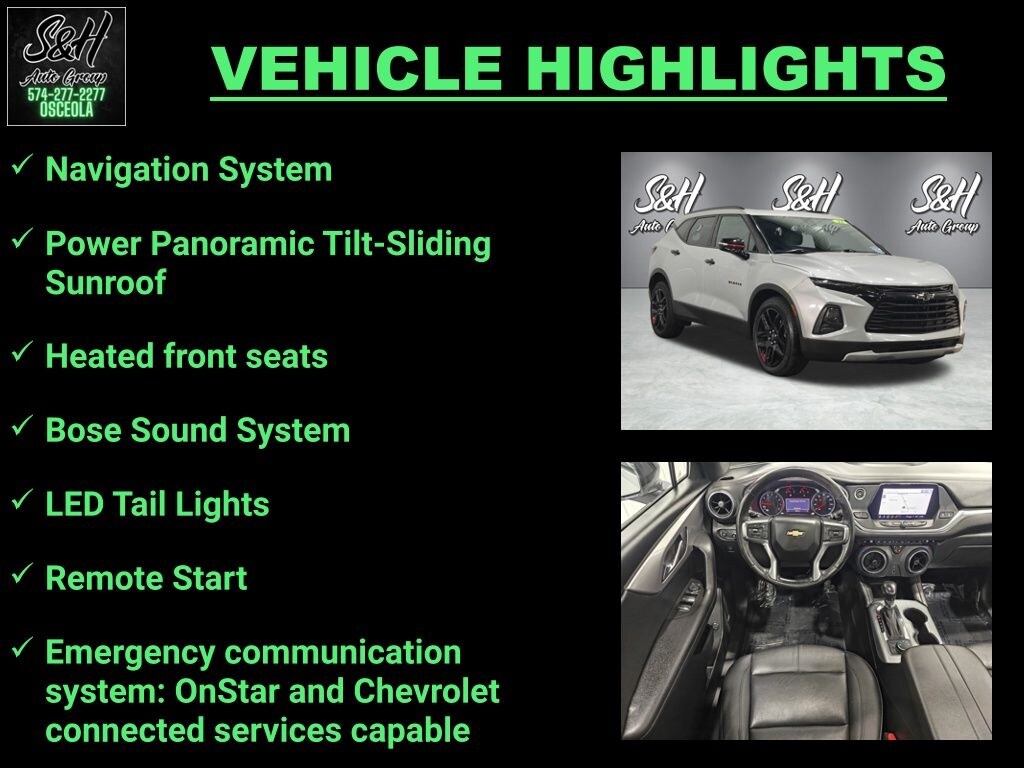 This is one impressive car. I purchased the Chevrolet Blazer with 6 cylinder engine. It has everything I want. Great acceleration, Great styling, Quiet engine, Well equiped, I really like the turn signals in the mirrors, push button start, blind spot monitoring, cross traffic monitoring, Continental Tires, and easy pairing of cell phone. I did not get AWD or GPS. There is nothing, I would change and for the price, a great deal to boot. You won't be disappointed.
