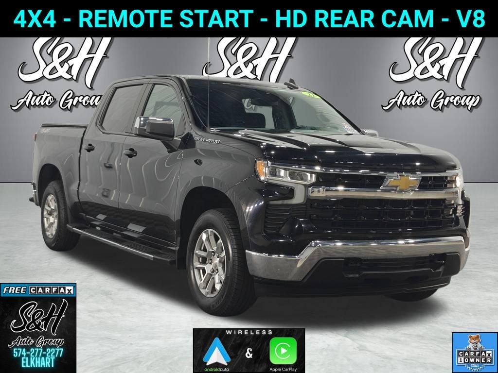 10-Speed Automatic, 4WD, Black Cloth. Black 2022 Chevrolet Silverado 1500 LT LT1 4WD 10-Speed Automatic 4D Crew Cab EcoTec3 5.3L V8 16/20 City/Highway MPG