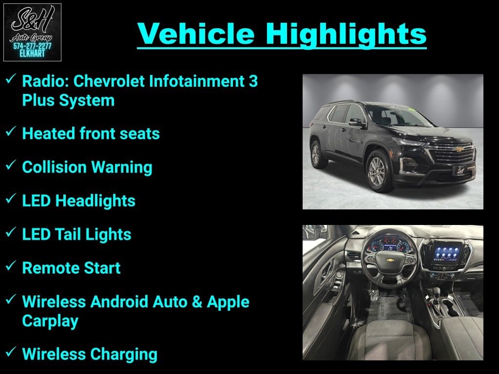 AWD. Mosaic Black Metallic 2022 Chevrolet Traverse LT 1LT AWD 9-Speed Automatic 4D Sport Utility 3.6L V6 SIDI VVT 17/25 City/Highway MPG