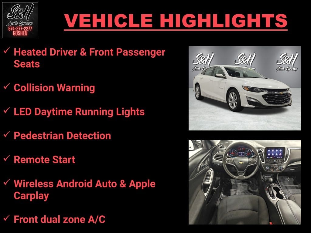 Priced below KBB Fair Purchase Price! CARFAX One-Owner. Clean CARFAX. Collision Warning, LED Daytime Running Lights, Pedestrian Detection, Remote Start, Wireless Android Auto & Apple Carplay, Jet Black w/Premium Cloth Seat Trim, Emergency communication system: OnStar and Chevrolet connected services capable, Exterior Parking Camera Rear, Front dual zone A/C, Heated Driver & Front Passenger Seats. Summit White 2023 Chevrolet Malibu LT 1LT FWD CVT 4D Sedan 1.5L DOHC 27/35 City/Highway MPG