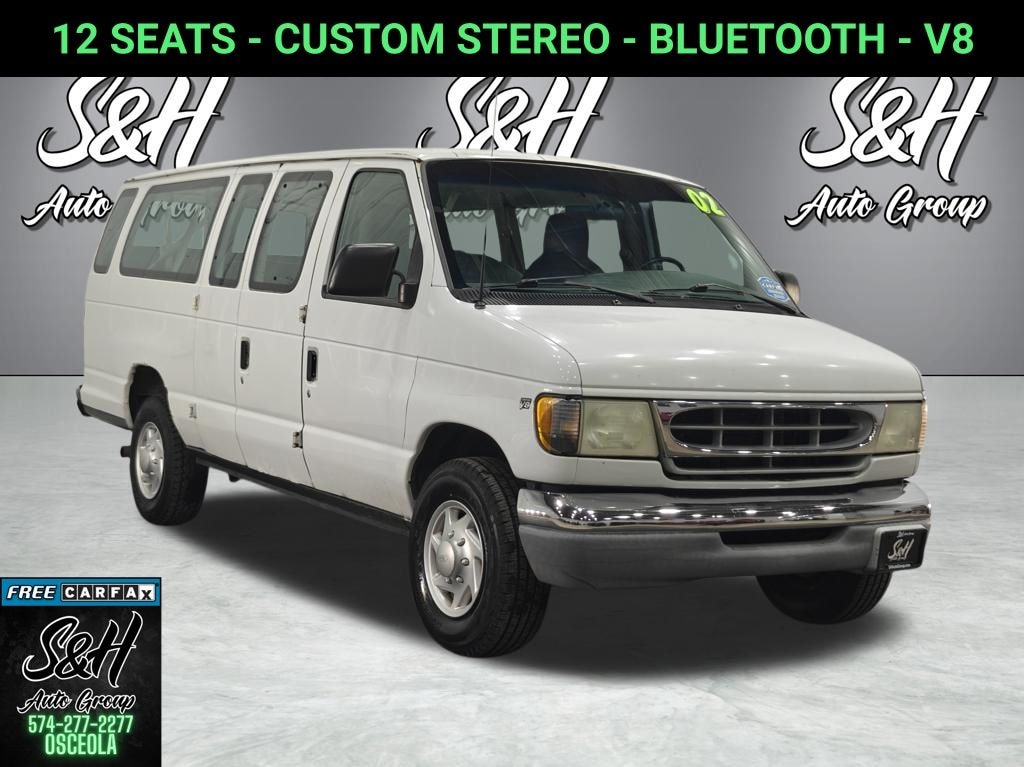 White 2002 Ford E-350SD RWD 4-Speed Automatic with Overdrive Extended Wagon 5.4L V8 EFI 13/17 City/Highway MPG