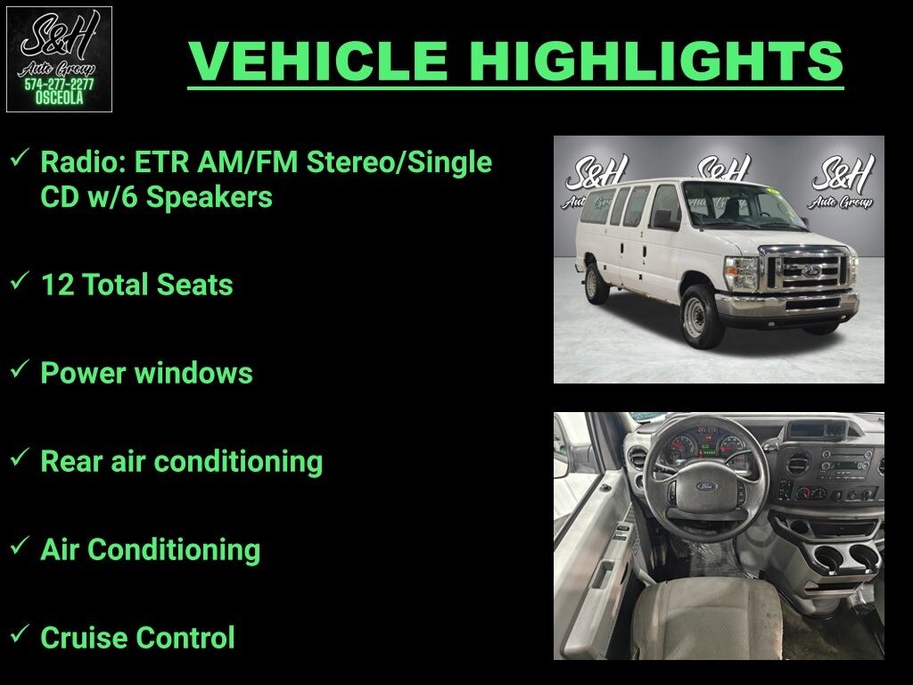 Priced below KBB Fair Purchase Price! 12 Total Seats, Air Conditioning, Cruise Control, Power windows, Radio: ETR AM/FM Stereo/Single CD w/6 Speakers, Rear air conditioning. Oxford White 2013 Ford E-350SD XLT RWD RWD RWD 4-Speed Automatic with Overdrive 5.4L V8 EFI Flex Fuel