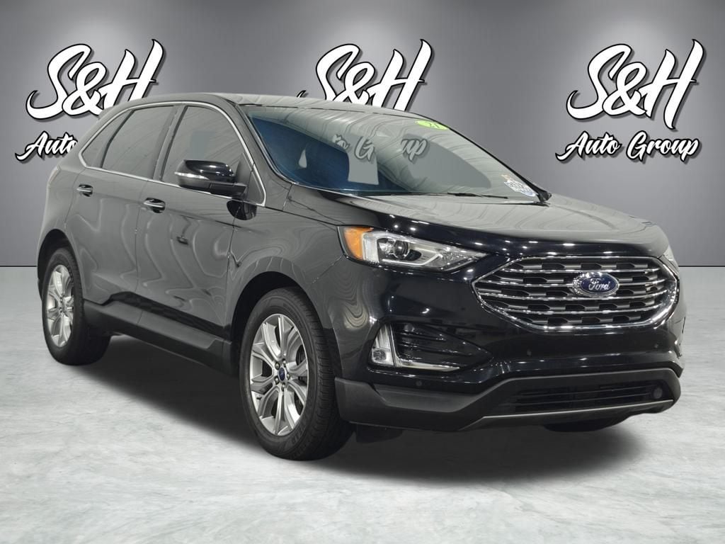 Clean CARFAX. AWD. Black Metallic 2021 Ford Edge Titanium AWD 8-Speed Automatic 4D Sport Utility EcoBoost 2.0L I4 GTDi DOHC Turbocharged VCT 21/28 City/Highway MPG