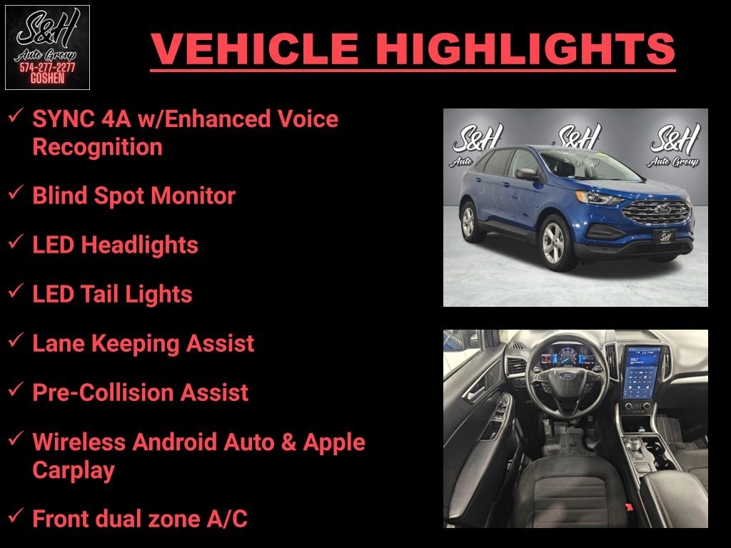 Clean CARFAX. AWD. Blue Metallic 2022 Ford Edge SE AWD 8-Speed Automatic 4D Sport Utility EcoBoost 2.0L I4 GTDi DOHC Turbocharged VCT 21/28 City/Highway MPG