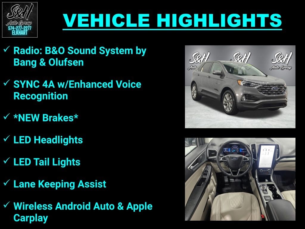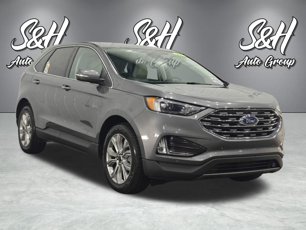 AWD. Gray Metallic 2023 Ford Edge Titanium AWD 8-Speed Automatic 4D Sport Utility EcoBoost 2.0L I4 GTDi DOHC Turbocharged VCT 21/28 City/Highway MPG