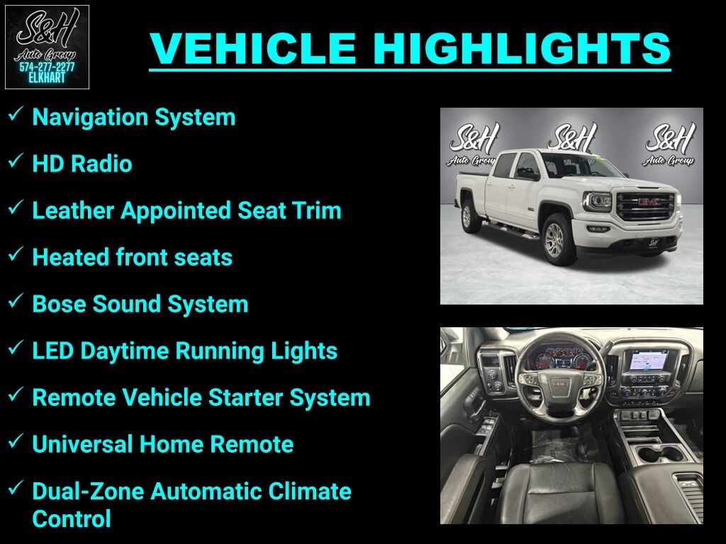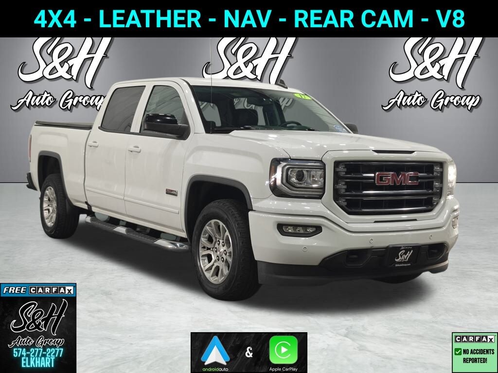 Clean CARFAX. 8-Speed Automatic with Overdrive, 4WD, Jet Black/Spice Red All-Terrain Leather. Summit White 2017 GMC Sierra 1500 SLT 4WD 8-Speed Automatic with Overdrive 4D Crew Cab EcoTec3 5.3L V8 15/21 City/Highway MPG