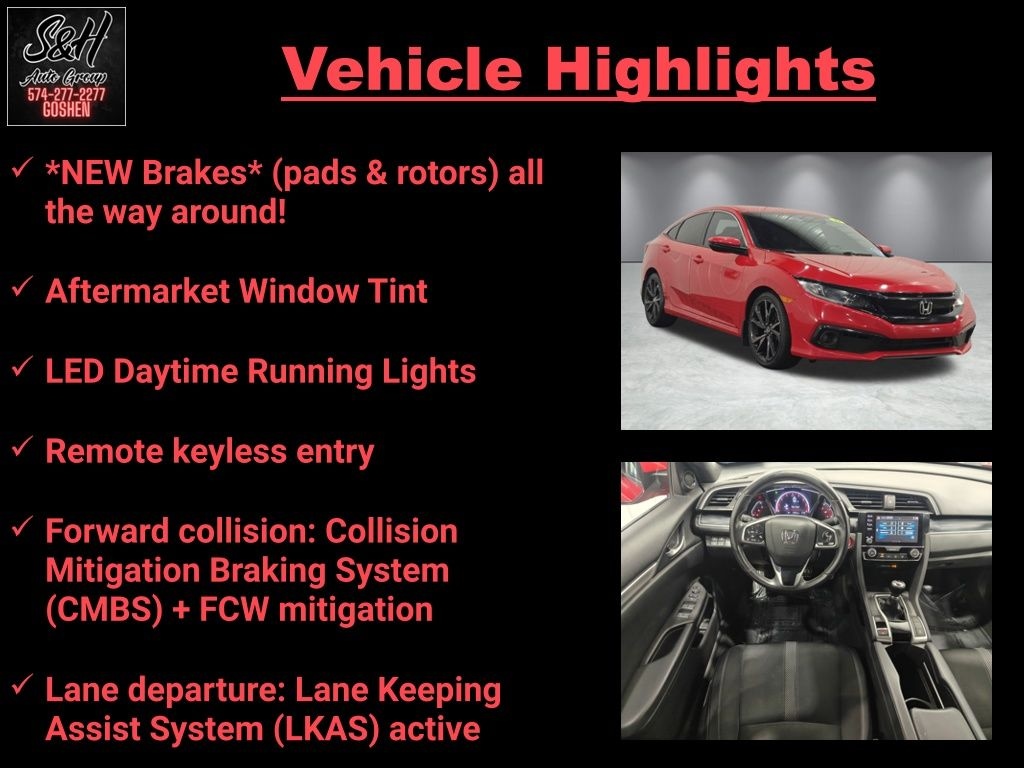 Cloth. Red 2019 Honda Civic Sport FWD 6-Speed Manual 4D Sedan 2.0L I4 DOHC 16V i-VTEC 25/36 City/Highway MPG
