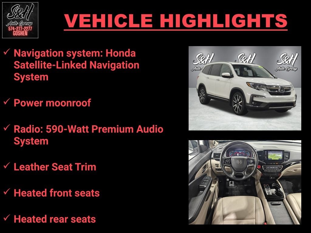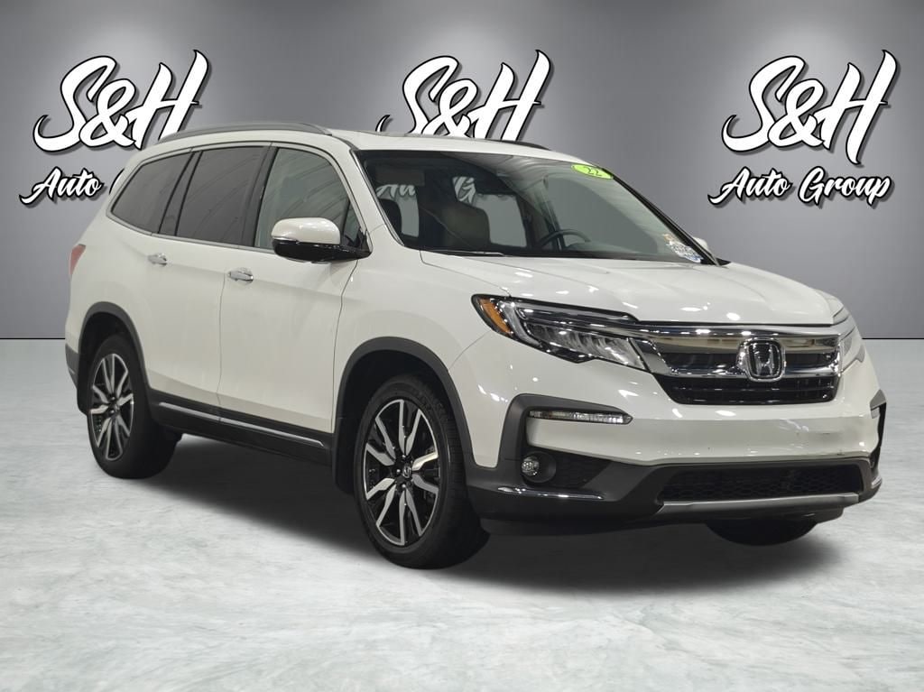 Clean CARFAX. AWD. White 2022 Honda Pilot Touring 7 Passenger AWD 9-Speed Automatic 4D Sport Utility 3.5L V6 24V SOHC i-VTEC 19/26 City/Highway MPG
