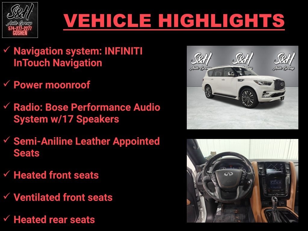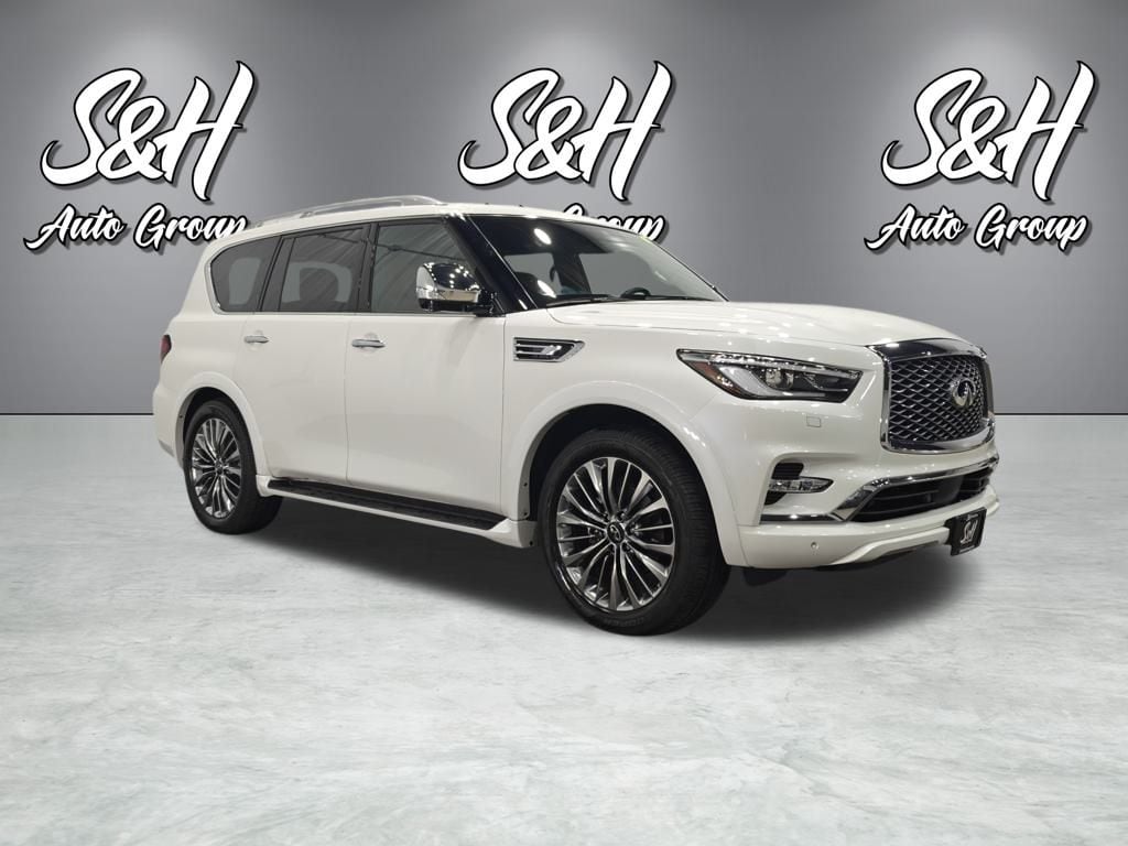 Clean CARFAX. Moonstone White 2021 INFINITI QX80 Sensory 4WD 7-Speed Automatic 4D Sport Utility 5.6L V8 13/19 City/Highway MPG