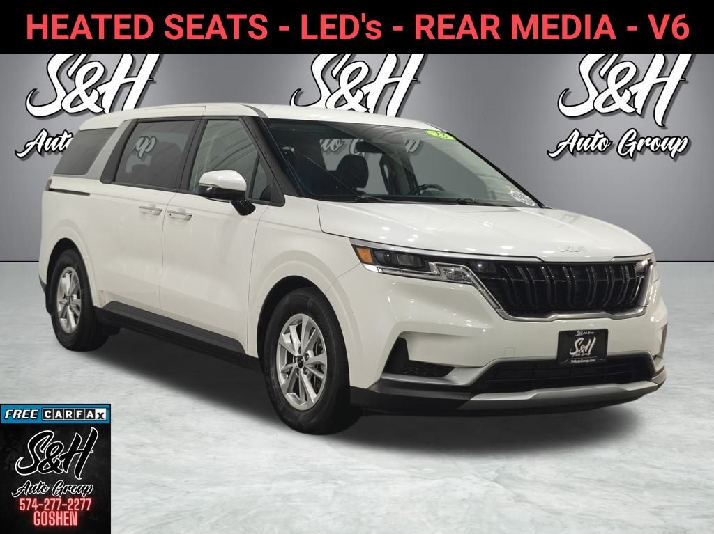Clean CARFAX. Snow White Pearl 2023 Kia Carnival LX FWD 8-Speed Automatic 4D Passenger Van V6 19/26 City/Highway MPG