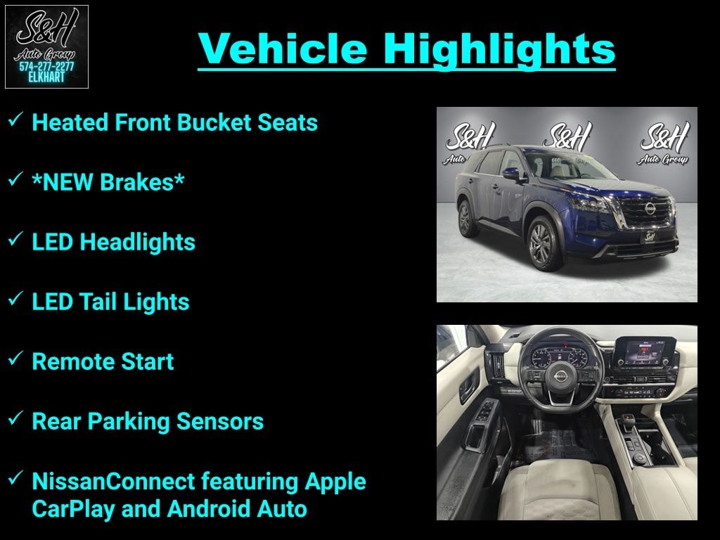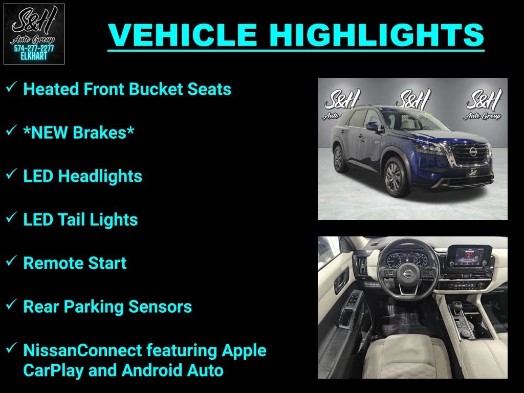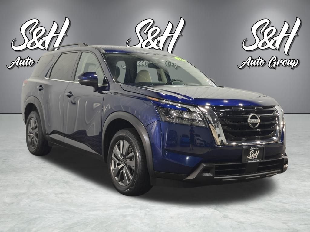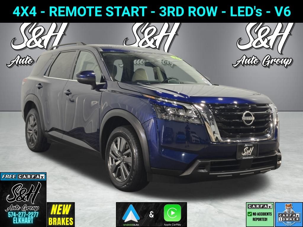 CARFAX One-Owner. Clean CARFAX. LED Headlights, LED Tail Lights, Remote Start, 4WD, Heated Front Bucket Seats, NissanConnect featuring Apple CarPlay and Android Auto, Rear Parking Sensors. Deep Ocean Blue Pearl 2023 Nissan Pathfinder SV 4x4 4WD 9-Speed Automatic 4D Sport Utility V6 21/27 City/Highway MPG