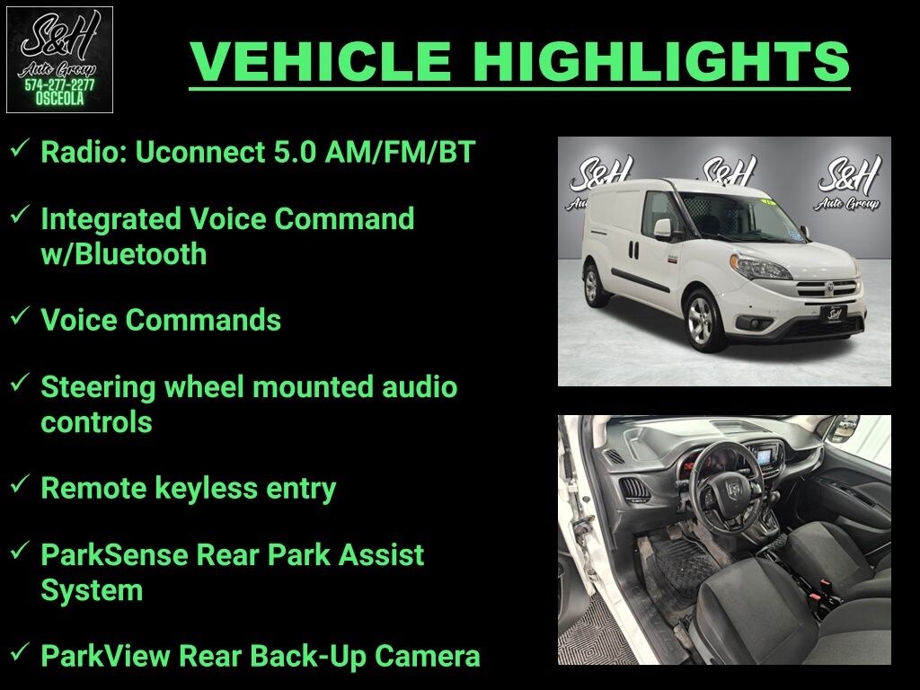 Voice Commands, Integrated Voice Command w/Bluetooth, ParkSense Rear Park Assist System, ParkView Rear Back-Up Camera, Radio: Uconnect 5.0 AM/FM/BT, Remote keyless entry, Steering wheel mounted audio controls, Telescoping steering wheel. Bright White 2015 Ram ProMaster City SLT FWD FWD FWD 9-Speed 948TE Automatic 2.4L I4 MultiAir