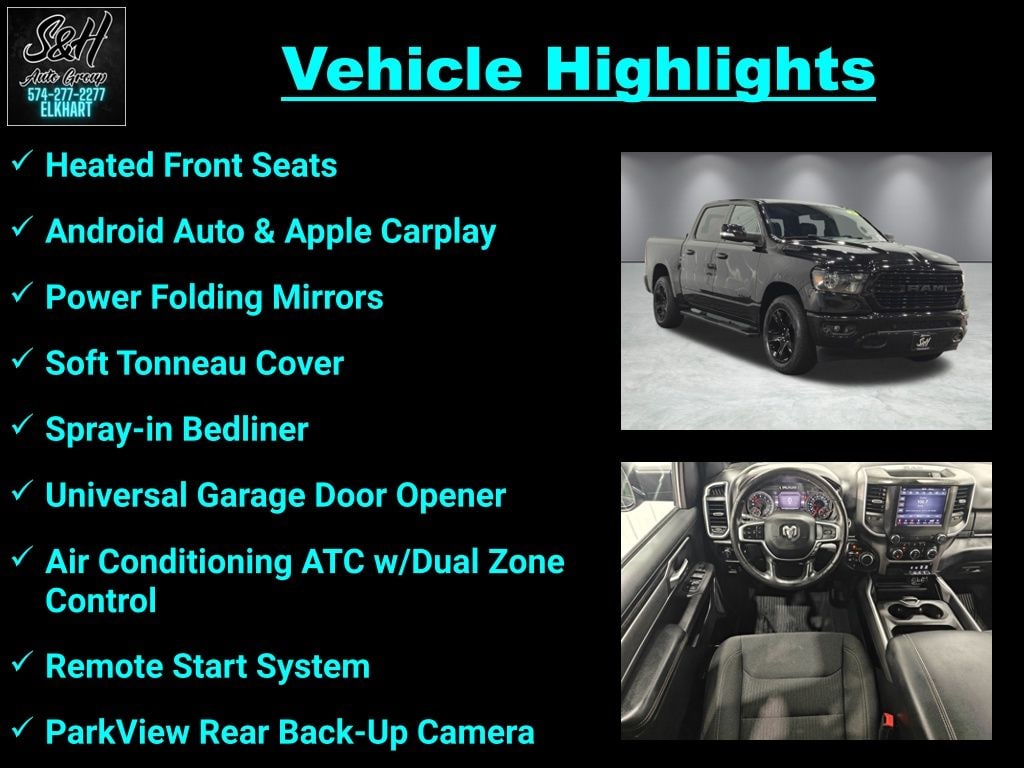 CARFAX One-Owner. Clean CARFAX. Diamond Black Crystal Pearlcoat 2020 Ram 1500 Big Horn/Lone Star 4WD 8-Speed Automatic 4D Crew Cab HEMI 5.7L V8 Multi Displacement VVT 15/21 City/Highway MPG