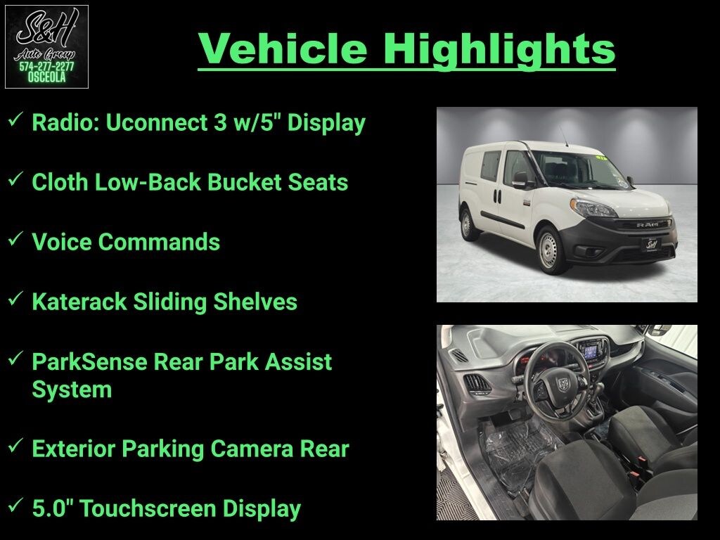 Voice Commands, Katerack Sliding Shelves, 5.0" Touchscreen Display, Cloth Low-Back Bucket Seats, Exterior Parking Camera Rear, ParkSense Rear Park Assist System, Radio: Uconnect 3 w/5" Display. Bright White 2021 Ram ProMaster City Tradesman FWD FWD FWD 9-Speed 948TE Automatic 2.4L I4 MultiAir