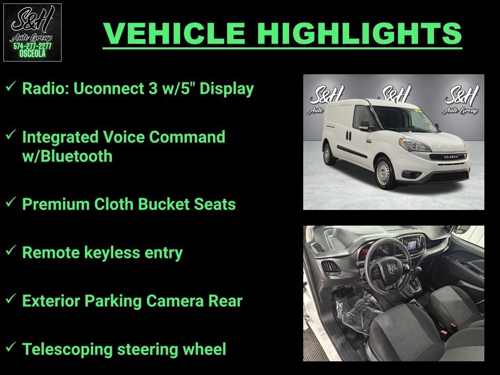 Exterior Parking Camera Rear, Integrated Voice Command w/Bluetooth, Premium Cloth Bucket Seats, Radio: Uconnect 3 w/5" Display, Remote keyless entry, Telescoping steering wheel. Bright White 2022 Ram ProMaster City Base FWD FWD FWD 9-Speed 948TE Automatic 2.4L I4 MultiAir