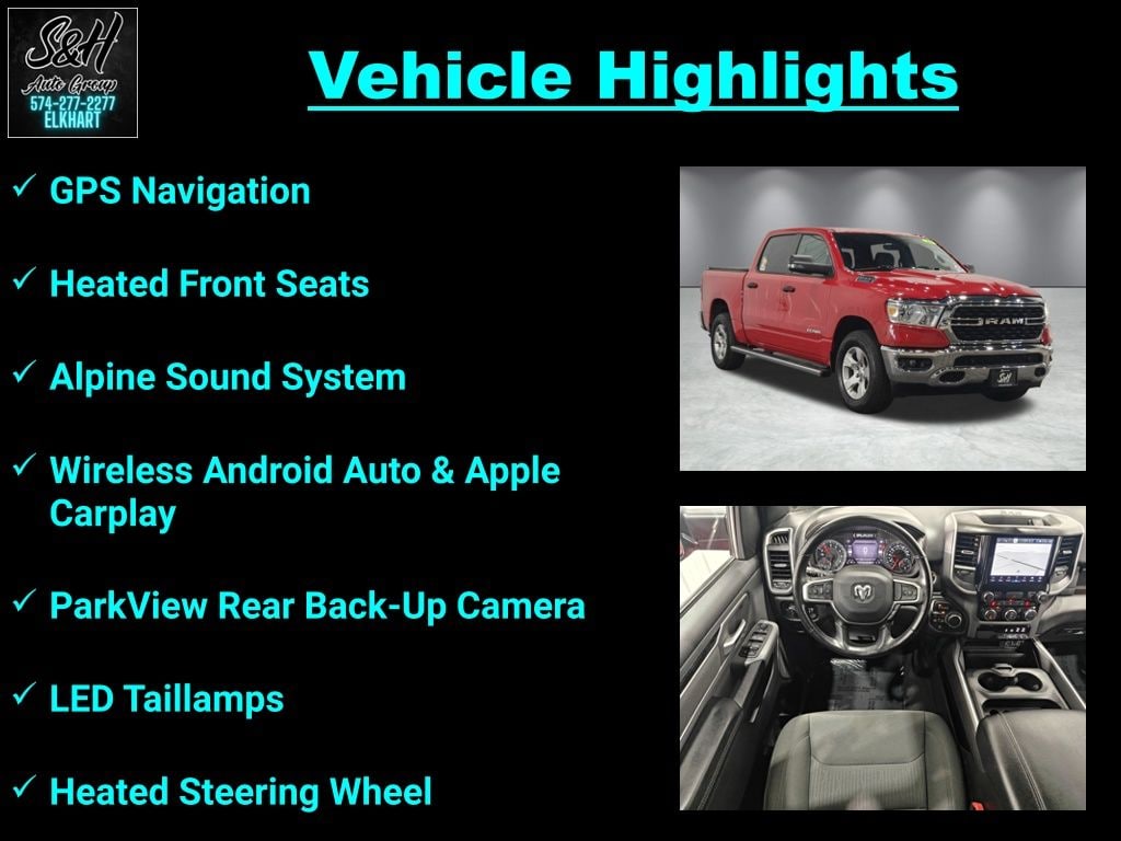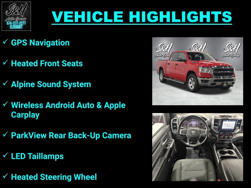 Flame Red Clearcoat 2023 Ram 1500 Big Horn/Lone Star 4WD 8-Speed Automatic 4D Crew Cab 3.6L V6 24V VVT 19/24 City/Highway MPG