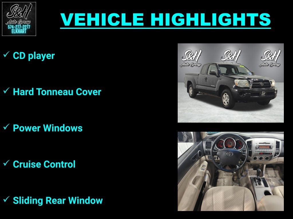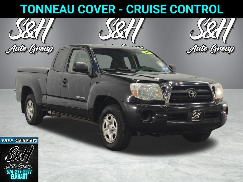Clean CARFAX. Black 2006 Toyota Tacoma RWD 4-Speed Automatic with Overdrive 4D Access Cab 2.7L I4 SMPI DOHC 21/26 City/Highway MPG