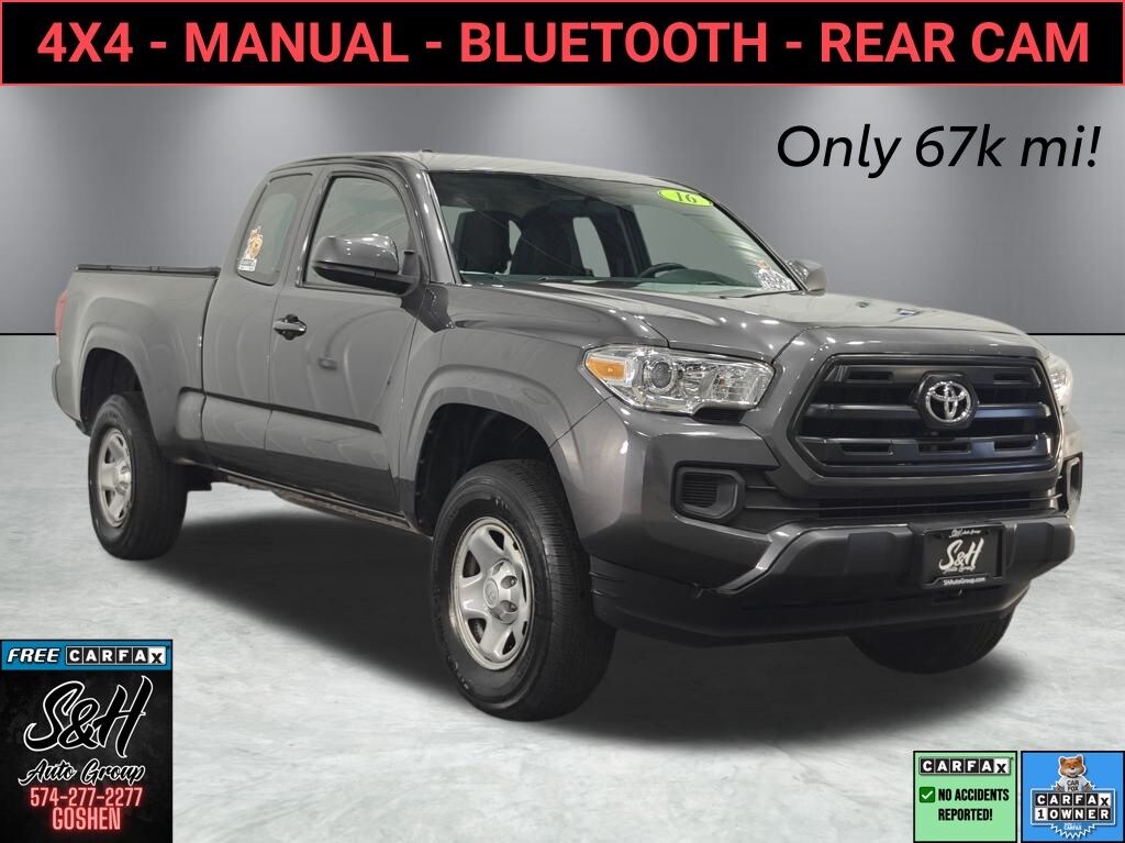 CARFAX One-Owner. Clean CARFAX. Bluetooth, Hard Tonneau Cover, LED Daytime Running Lights, Voice Commands, 4WD, Exterior Parking Camera Rear, Remote Keyless Entry. Magnetic Gray Metallic 2016 Toyota Tacoma SR 4x4 4WD 5-Speed Manual 4D Access Cab 2.7L I4 DOHC 16V 19/21 City/Highway MPG