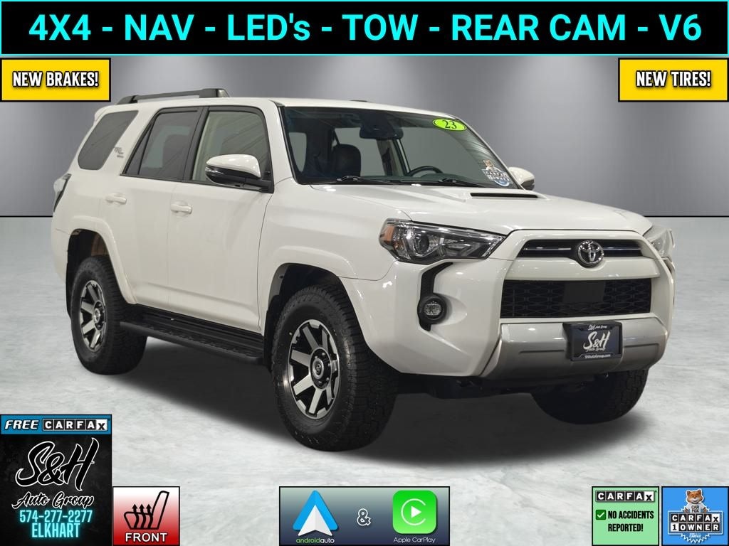 Clean CARFAX. 4WD. White 2023 Toyota 4Runner TRD Off-Road Premium 4WD 5-Speed with ECT 4D Sport Utility 4.0L V6 DOHC 24V 16/19 City/Highway MPG